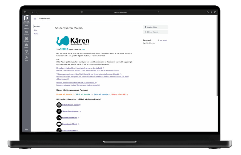 Get easier access to information from the Student Union – all information is gathered where you already are as a student. Keep track of what’s happening in the Student Union directly in Canvas.