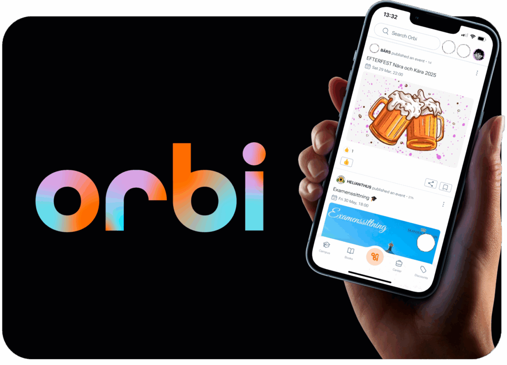 Join us at Orbi! Participate in events, buy tickets to parties, buy and sell books, find student discounts, and connect with your student community.