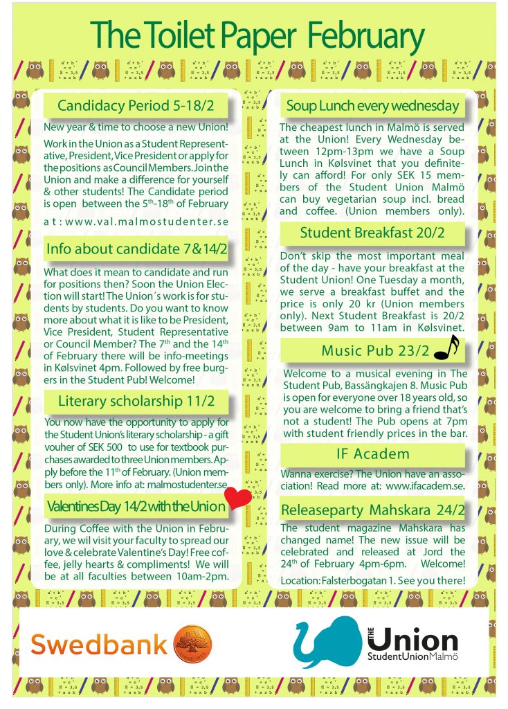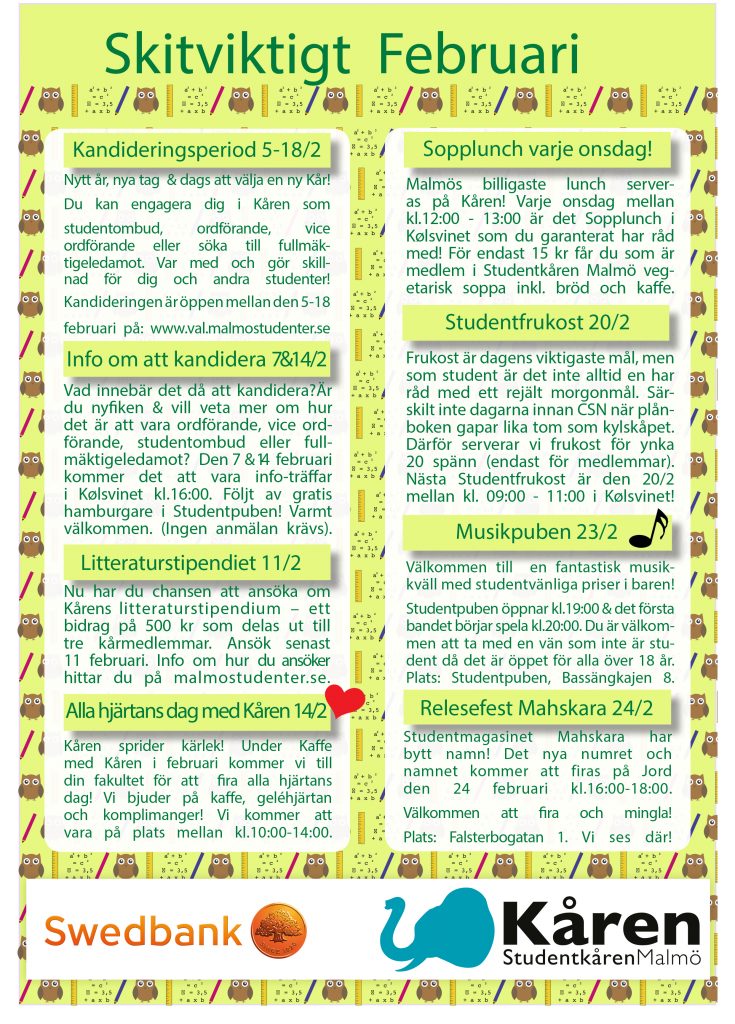 Missa inte Kårens skitviktiga information om allt skoj som händer under februari månad!